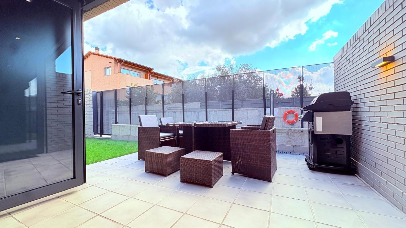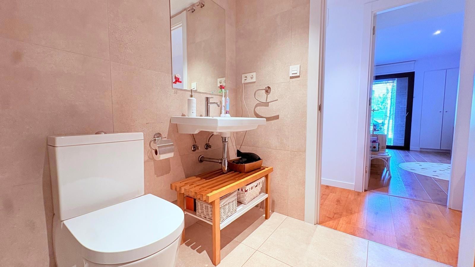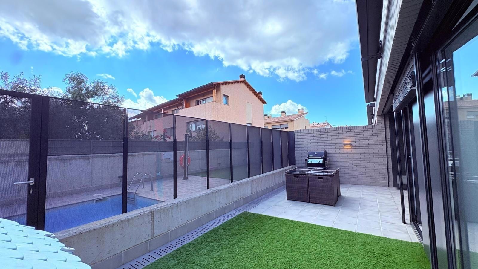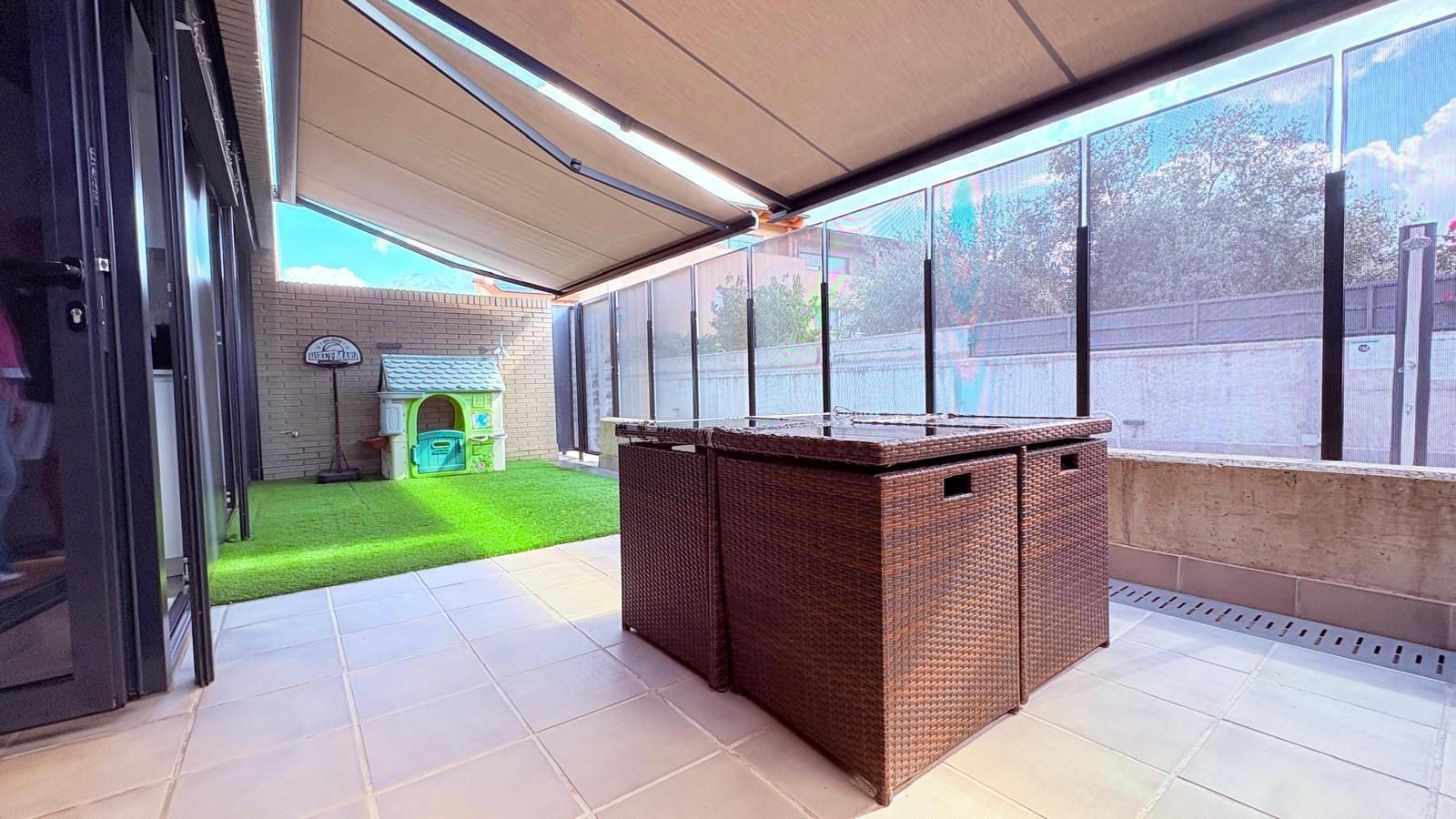 Las calidades interiores son inmejorables, con suelos de parquet, suelo radiante, aire acondicionado por conductos, aerotermia, carpintería exterior de primera calidad y en la terraza toldos eléctricos para garantizar su privacidad. Finca con pocos vecinos.