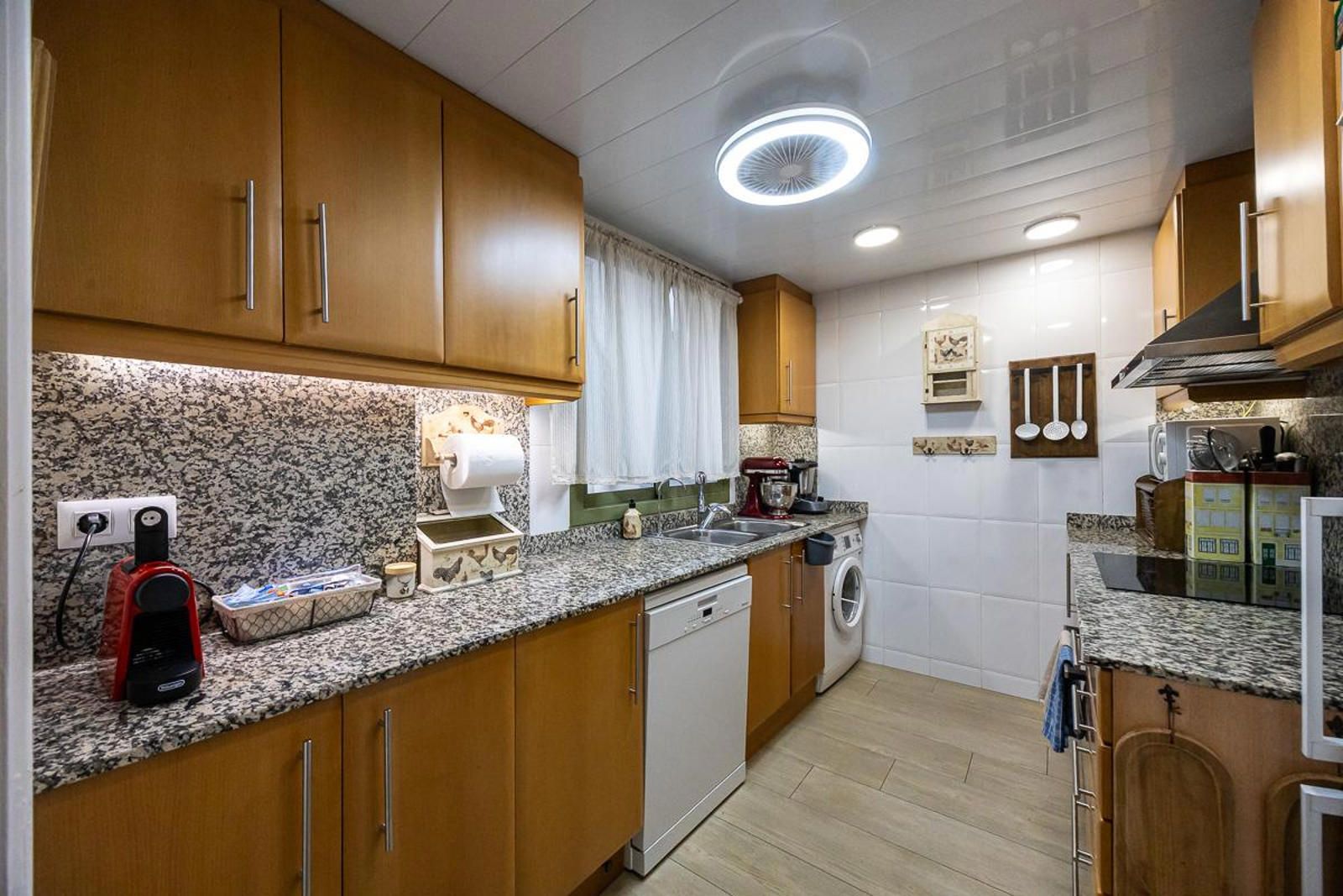 La vivienda destaca por sus acabados de calidad, con suelos de parquet, carpintería exterior de aluminio tipo Climalit, carpintería interior lacado en blanco, sistema de climatización por conductos, toldo en terraza, ascensor y parking incluido en el precio.