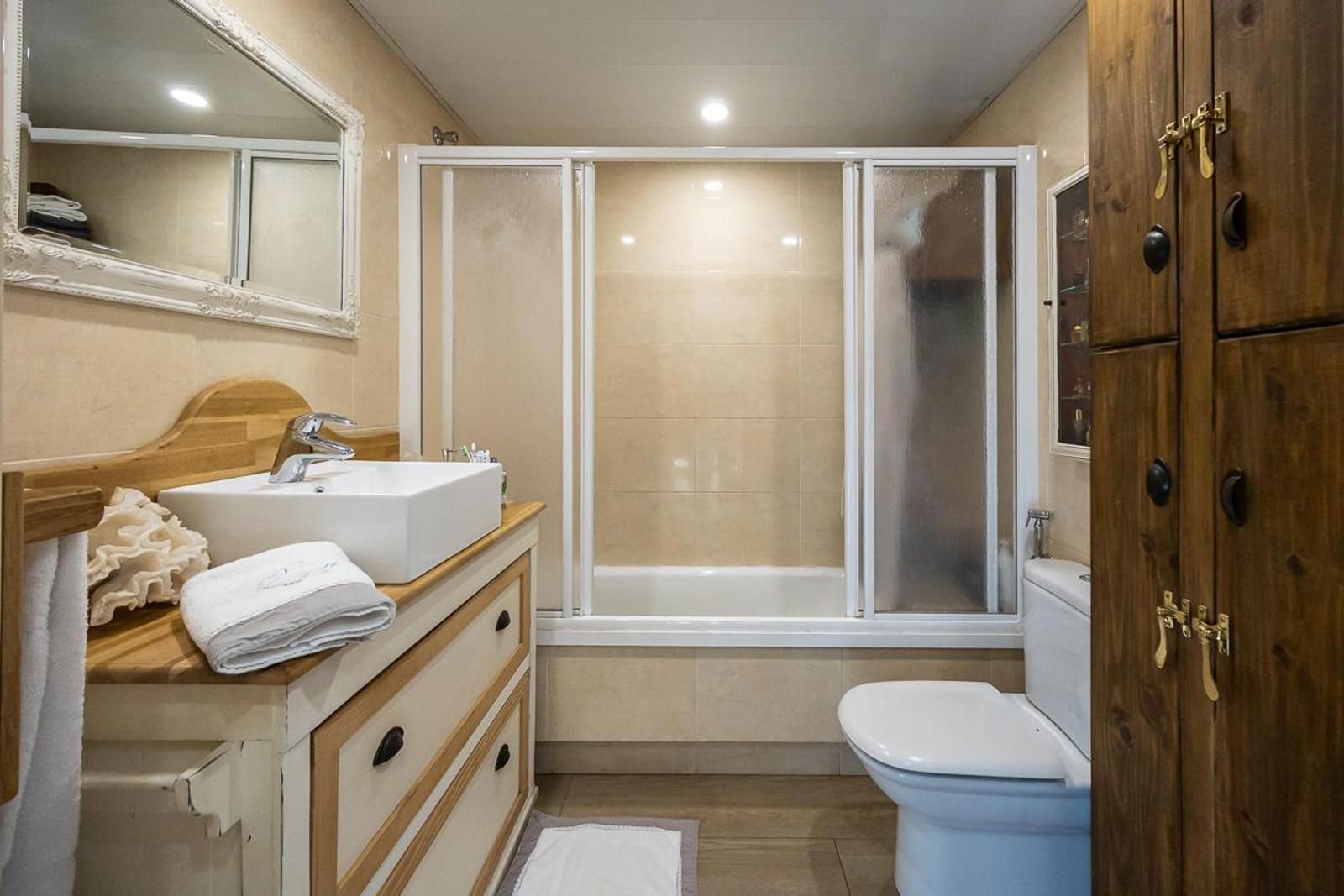 En la planta principal, encontramos un amplio salón-comedor con salida a un pequeño balcón, 1 habitación tipo suite y cocina independiente totalmente exterior. En la planta superior, encontramos 2 habitaciones 1 de ellas doble, baño con plato de ducha y una increible terraza de 35 m² con casita de madera, para disfrutar al aire libre.